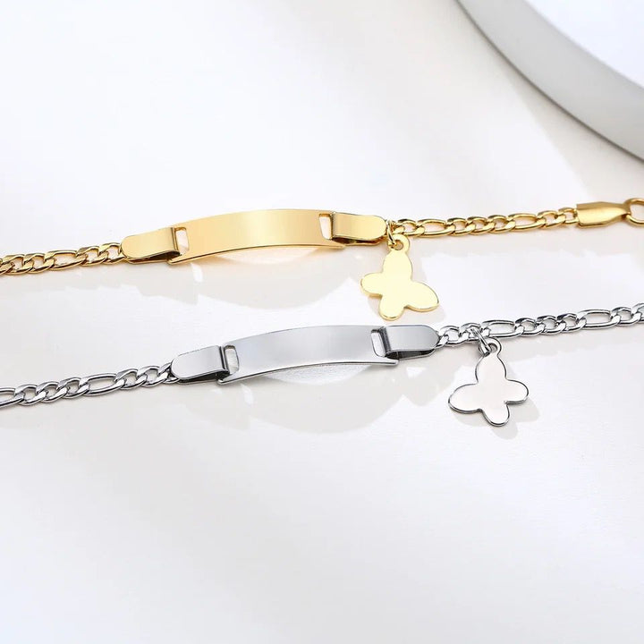 Custom Personalized Name Baby ID Bracelet, Stainless Steel Curb Chain Link Butterfly Bracelet Newborn Gilrs Boy Gifts Not Allergic